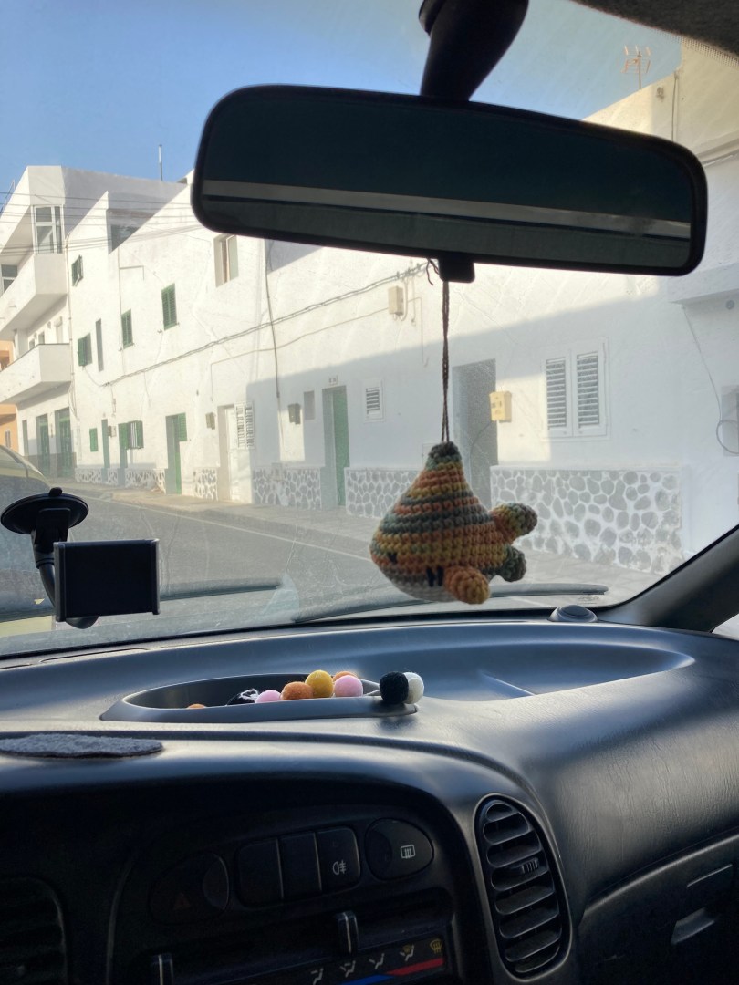 Ik zou willen zeggen dat de eerste nacht in mijn nieuwe busje geweldig was en ik super lekker geslapen had, maar niets is minder waar. Ik was natuurlijk de hele dag onderweg geweest in de hitte, hartstikke oververmoeid en in een helemaal nieuwe omgeving waardoor ik niet kon slapen. Uiteindelijk toch een paar uurtjes kunnen slapen en toen ik in de ochtend wakker werd voelde ik me geweldig. Op mijn verjaardag wakker worden met uitzicht op zee in mijn nieuwe bus. Het opendoen van de schuifdeur en de zee zien is echt een van mijn lievelingsmomenten. Het was wel wat bewolkt en heel erg winderig, dus heb lekker lang in bed gechillt. Toen de zon doorbrak heb ik buiten m’n feestontbijt klaargezet en bij gebrek aan een campingstoel op een steen gezeten en lekker buiten ontbeten. Ondertussen al heel veel lieve verjaardagswensen mogen ontvangen en ik voelde me echt ontzettend goed. Ik was trots op mezelf dat ik helemaal zelf hier een auto gekocht heb en alle papierwerk heb geregeld, dat ik op een geweldige plek wakker mocht worden en ik voelde nieuwe energie en kracht. Ik dacht lekker even aan het strand te gaan liggen met een boek, maar zodra ik mijn handdoek had neergelegd werd ik zo gezandstraald door de harde wind dat ik dat niet lang heb volgehouden. Dus ben toen maar de zee in gerend om in de golven te springen en daarna opgedroogd in de zon bij mijn busje. Toen vond ik dat het tijd was voor taart, dus ben ik gaan rijden naar het dorpje Famara. Weer terug over de offroad weg, maar nu met goed licht gelukkig en was het eigenlijk bizar te bedenken dat ik dit gisterenavond in het donker gereden heb.