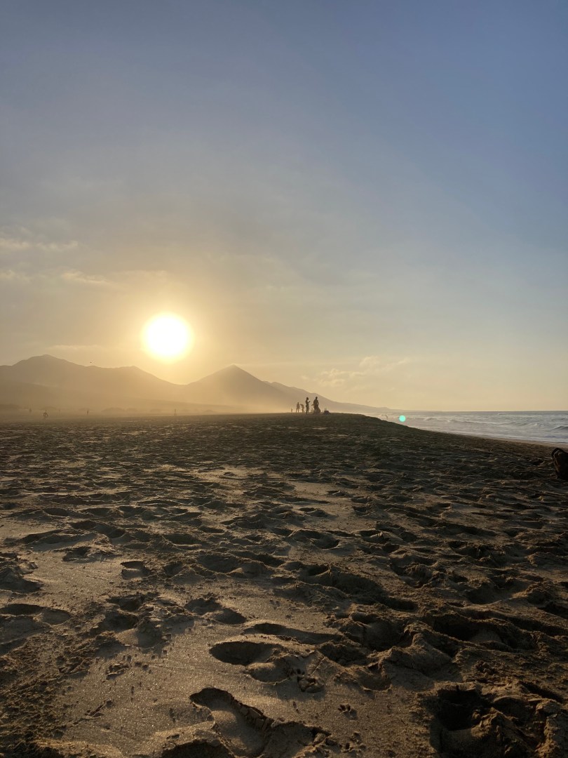 Na ongeveer 1,5 uur offroad bereikte ik het strand en de parkeerplaats van Cofete en besloot ik iets verder door te rijden omdat ik daar meer campertjes zag staan. En ook om de volgende ochtend in de rust wakker te kunnen worden ipv midden op een parkeerplaats. Helaas maakte ik daar een verkeerde inschatting en kwam mijn auto vast te zitten in het zand. Omdat hulp vragen nu niet echt mijn sterkste punt is, ben ik eerst zelf begonnen met zand wegscheppen en ruimte creëren om een paar matten onder mijn wielen te leggen. Helaas was dit niet genoeg en moest ik toch echt naar iemand toe om hulp te vragen en deze man was gelukkig heel erg bereid te helpen. Hij zei ook dat ik niet de eerste was die dag, dus dat stelde ook weer wat gerust. Samen met deze man en nog iemand anders die kwam aanlopen hebben ze me uit het zand geduwd en was ik weer op de harde ondergrond gelukkig! Alleen, toen merkte ik al vrij snel dat mijn remmen het niet meer deden zoals voorheen. Ik schaamde me natuurlijk al dat ik vast zat in het zand, dus ik durfde niet aan deze mannen aan te geven dat mijn rem het niet meer deed en ik hoopte dat ik het zelf mis had.